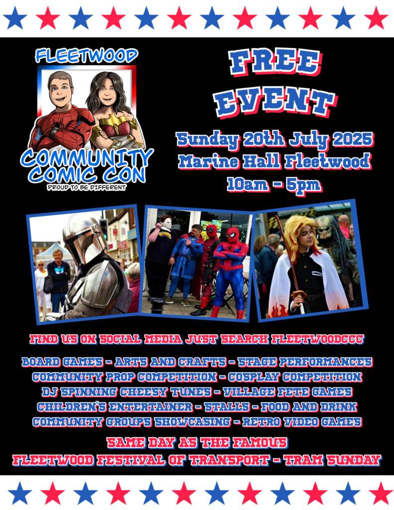 Join us on Sunday 20th July 2025 for our first ever Fleetwood Comic Con.