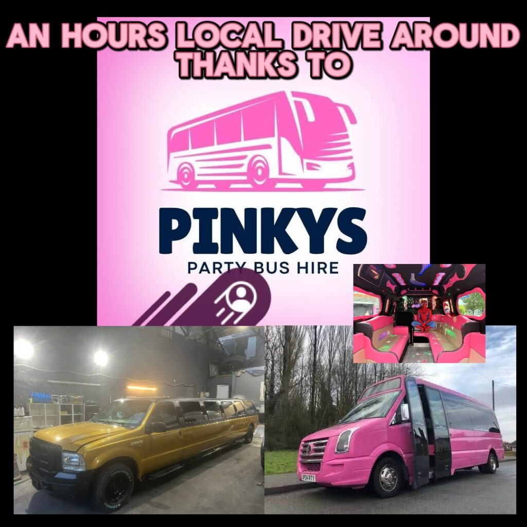 An hours local drive around in a Party Bus from Pinkys