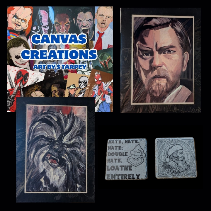 Set of 2 paintings and 2 coasters by Canvas Creations Art