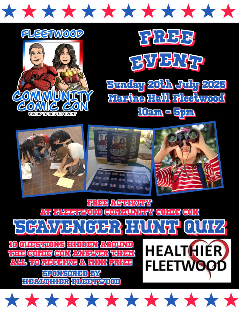 We are absolutely delighted to announce that Healthier Fleetwood is sponsoring our Scavenger Hunt Quiz at Fleetwood Community Comic Con!